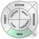 SteeringWheels, also known as wheels, can save you time by combining many of the common navigation tools into a single interface. Wheels are task specific from which you can navigate and orient a model in different views.