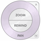 Tooltips are displayed for each button on a wheel as the cursor is moved over them. The tooltips appear below the wheel and identify what action will be performed if the wedge or button is clicked.