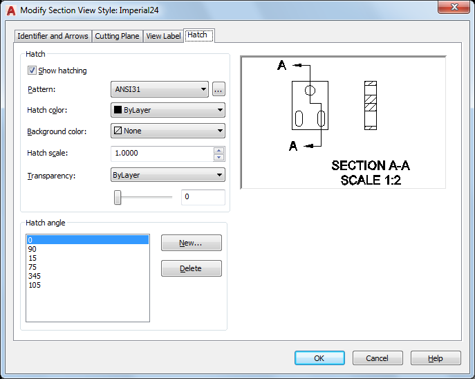 Sets the hatch pattern to use for all hatches within section views.
