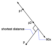 Determines the distance between two points, p1 and p2. This is the same as the vector expression abs( p1 - p2 ).