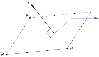 The following example finds the distance between the point 3,2,4 and a plane you define by selecting three endpoints: