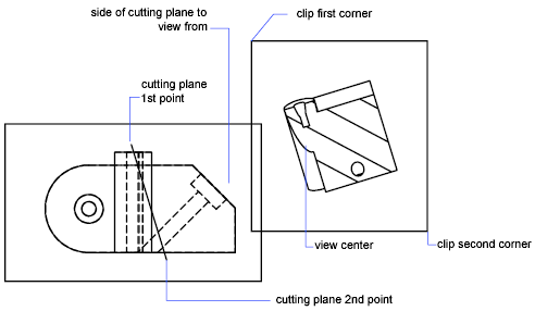 Creates a drafting sectional view of solids, complete with cross-hatching. When you use SOLDRAW on a sectional view created with this option, it creates a temporary copy of the solids and uses SLICE to perform the operation at the cutting plane that you define. SOLDRAW then generates a profile of the visible half of the solids and discards the original copy. Finally SOLDRAW sections the solids. Solids not crossing the cutting plane are generated as full profiles. Because drafting standards recommend not drawing hidden lines in sectional views, SOLVIEW freezes the View Name-HID layer.