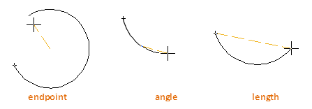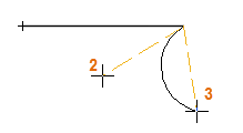 - (2) Tangent direction from the start point of the arc. Specifies a point that establishes a tangency of the curve to the start point. The arc curves away from the vector between the start point and the tangent point.