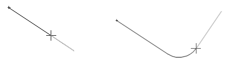 Creates a segment of a specified length at the same angle as the previous segment. If the previous segment is an arc, the new line segment is tangent to that arc segment.