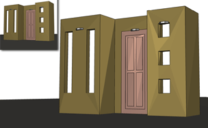 Shows details of 3D surface or solid by using warm colors for lighted areas and cool colors for darker areas. Only objects without applied materials show this face style.