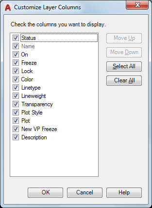 Controls the display and order of columns in the Layer Properties Manager.