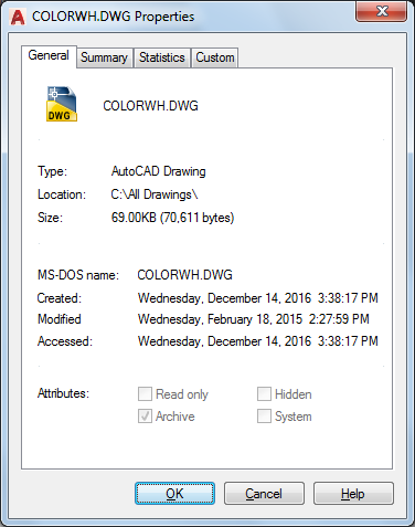 Displays read-only information about the drawing file, which is derived from the operating system.