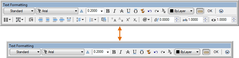 Controls display of the Text Formatting toolbar. This option sets the MTEXTTOOLBAR system variable. (Not available for single-line text.)