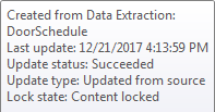 When a drawing containing a data extraction table is opened in AutoCAD LT, the tooltip text indicates the table contains extracted data. You cannot update the extracted data or change a data link, if one exists