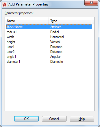 Displays the names of parameters available to add to the block properties table.