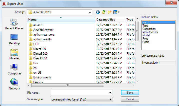 Specifies the database table fields to export. The key fields for the selected link template are included automatically. The handle of the object that each link is associated with is also exported.
