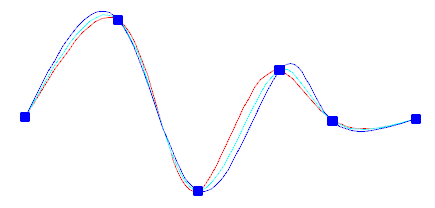 When you create splines using fit points, the resulting curve passes through the specified points, and is influenced by the spacing of mathematical knots in the curve.