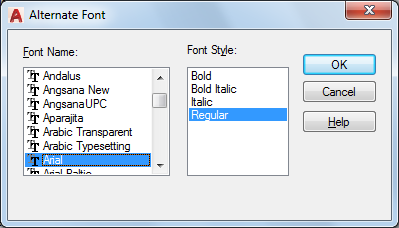 Specifies font character formatting, such as italic, bold, or regular. If the missing font is a Big Font, this option changes to Big Font and lists all available Asian-language Big Font files.