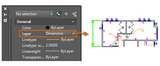 When you specify the current properties in a drawing, all newly created objects use those settings automatically. For example, if you set the current layer to Dimensions, the objects that you create will be on the Dimensions layer.