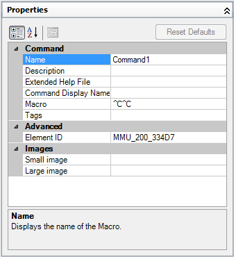- In the Name box, enter a name for the command. The value is used as the default name when added to a user interface element and as part of a tooltip.