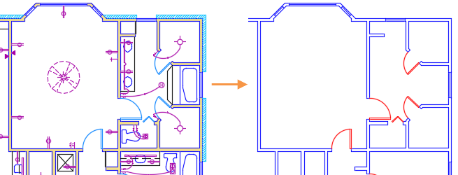 In this example, all layers except those for the walls and doors were turned off, and the color for the door layer was changed. With layer states, you can save sets of layer settings and easily switch between them.
