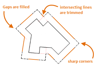 The OFFSETGAPTYPE system variable controls whether the extended corners are sharp, filleted, or chamfered.