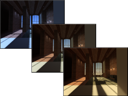 White balance allows for the lighting in a rendered image to be cooled or warmed. Cool light makes the image appear blueish, while warm light makes the image appear reddish or orangish in color.