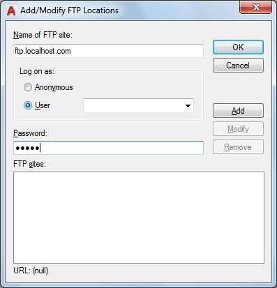 Specifies the site name for the FTP location (for example, ftp.autodesk.com).