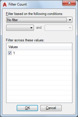 Displays a list of values depending on the type of data being filtered. Filters for numeric data include Greater than >, Equal To, Between, and so on. Filters for textual data include Equal To, Not Equal To, Contains, and Begins With.