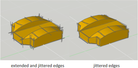 Edge modifiers such as line extension and jitter, produce the appearance of a model that is still in the conceptual phase. Jitter makes lines appear as though they were sketched with a pencil. Line extension produces another kind of hand-drawn effect.