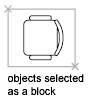 The program defines a block using the objects selected, the insertion base point, and the name provided, and then erases the selected objects from the drawing. You can restore the deleted objects by entering the OOPS command immediately after BLOCK.