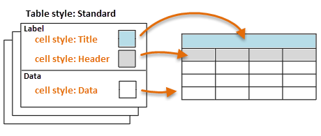 The default table style, Standard, includes three default cell styles: Title, Header, and Data. The Title and Header cell styles are a Label type of cell, while the Data cell style is a Data type of cell.