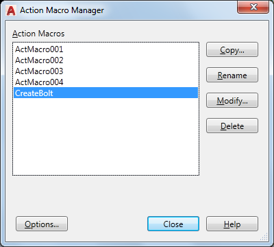 Your recorded action macro (ACTM) files are listed in the Action Macro Manager.