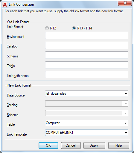 In Catalog, enter the name of the Release 13 or Release 14 catalog for the link that you want to convert.