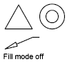 Turns off Fill mode. Only the outlines of objects are displayed and plotted. Changing Fill mode affects existing objects after the drawing is regenerated. The display of lineweights is not affected by the Fill mode setting.
