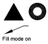 Turns on Fill mode. For the filling of a 3D object to be visible, its extrusion direction must be parallel to the current viewing direction, and hidden lines must not be suppressed.