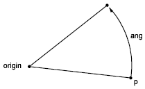 Rotates point p through angle ang about the Z axis passing through the point origin, as shown in the following example: