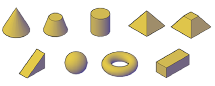 You can create several basic 3D shapes, known as solid primitives with commands such as CYLINDER, PYRAMID, and BOX.