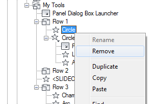 - Right-click the command or control that you want to remove. Click Remove.