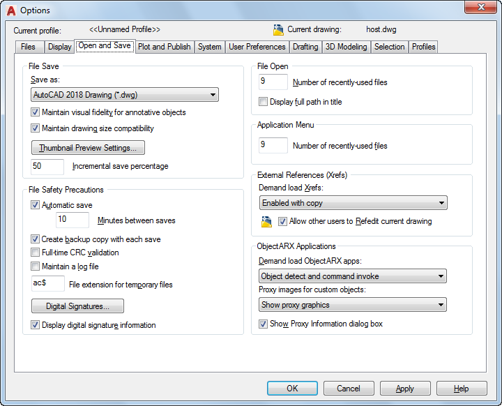 Turns xref demand-loading on and off, and controls whether it opens the referenced drawing or a copy.