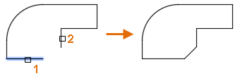If both distances are set to zero, the selected objects or line segments are extended or trimmed so they intersect.