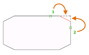 Inserts a chamfer line at each vertex of a 2D polyline where two straight line segments meet. The chamfer lines become new segments of the polyline, unless the Trim option is set to No Trim.