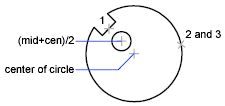 For example, you enter (mid+cen)/2 to specify a point halfway between the midpoint of a line and the center of a circle.