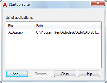 NOTE:Starting with AutoCAD 2014-based products, the custom applications added to the Startup Suite must be placed in a trusted location; trusted locations are specified by the TRUSTEDPATHS system variable.