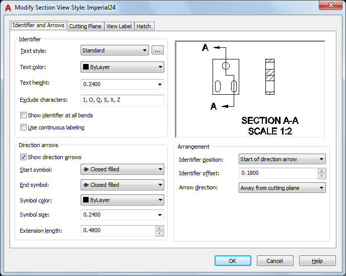 NOTE:The arrangement is also controlled by the projection angle (first or third).