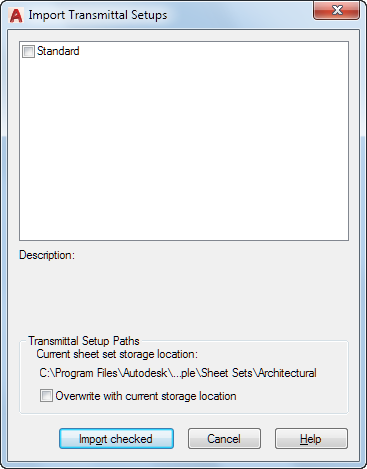 Displays a list of transmittal setups. Check the ones that you want to import into the current sheet set.