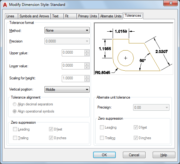 - None: Does not add a tolerance. The DIMTOL system variable is set to 0.