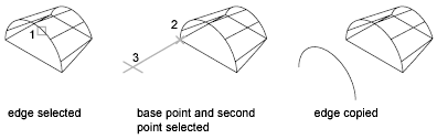 Copies faces as a region or a body. If you specify two points, SOLIDEDIT uses the first point as a base point and places a single copy relative to the base point. If you specify a single point (usually entered as a coordinate) and then press Enter, SOLIDEDIT uses the coordinate as the new location.