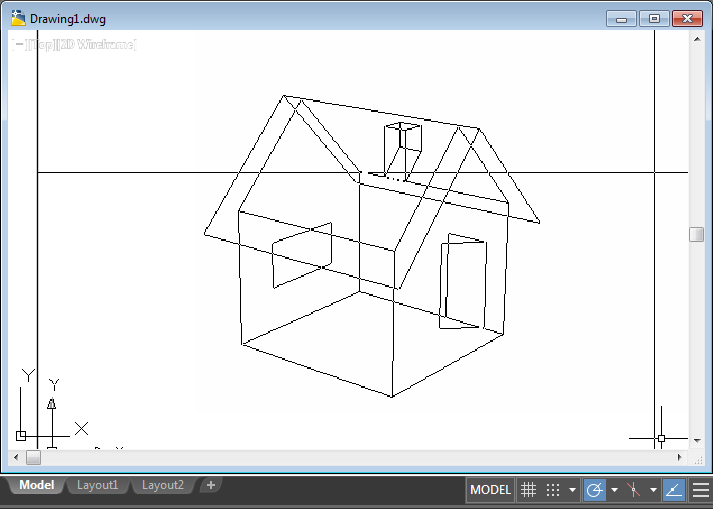 If you press Enter at the Select Objects prompt, DVIEWBLOCK displays a preview image. You can create your own DVIEWBLOCK block in a 1 unit by 1 unit by 1 unit area, with its origin at the lower-left corner. The following illustration shows an example of using the default DVIEWBLOCK to set the view (moving the graphics cursor adjusts the view).