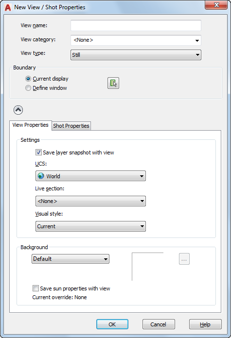 Uses the current display as the new view.
