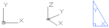 - 2D. The letter W appears in the Y portion of the icon if the UCS is coincident with the WCS (World Coordinate System). If the UCS is rotated so that the Z axis lies in a plane parallel to the viewing plane—that is, if the XY plane is edge-on to the viewer—the 2D UCS icon is replaced by a broken pencil icon.