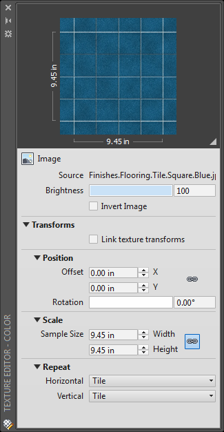 The Position, Scale, and Repeat are three standard transformations used in various textures. The following table identifies which textures have these linkable attributes: