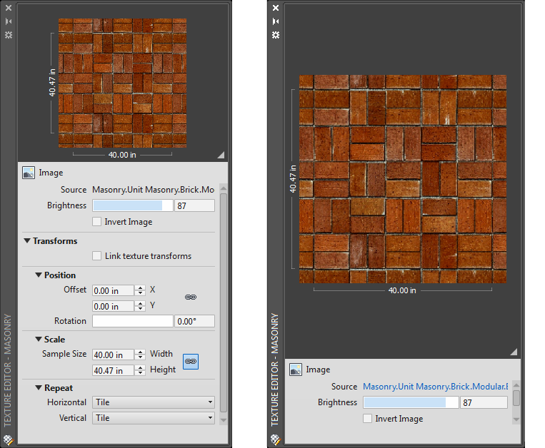 To apply the position, scale, and repeat property changes that you make to the current texture to other textures in the same material, select Link Texture Transforms.