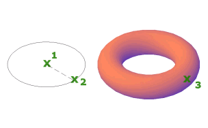 Defines the circumference of the torus with two points that you specify. The plane of the circumference is defined by the Z value of the first point.